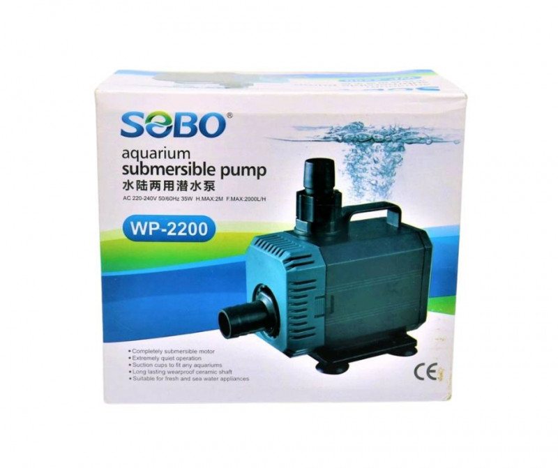WP-2200 SOBO WP-2200 ปั๊มน้ำสำหรับทำระบบกรอง หมุนเวียนน้ำ ทำน้ำพุ น้ำตก เหมาะสำหรับตู้ปลาขนาด 48-60 นิ้ว หรือบ่อเลี้ยงปลาประมาณ 300 ลิตร กำลังปั๊ม 2000 L/Hr. กำลังไฟ 35 w